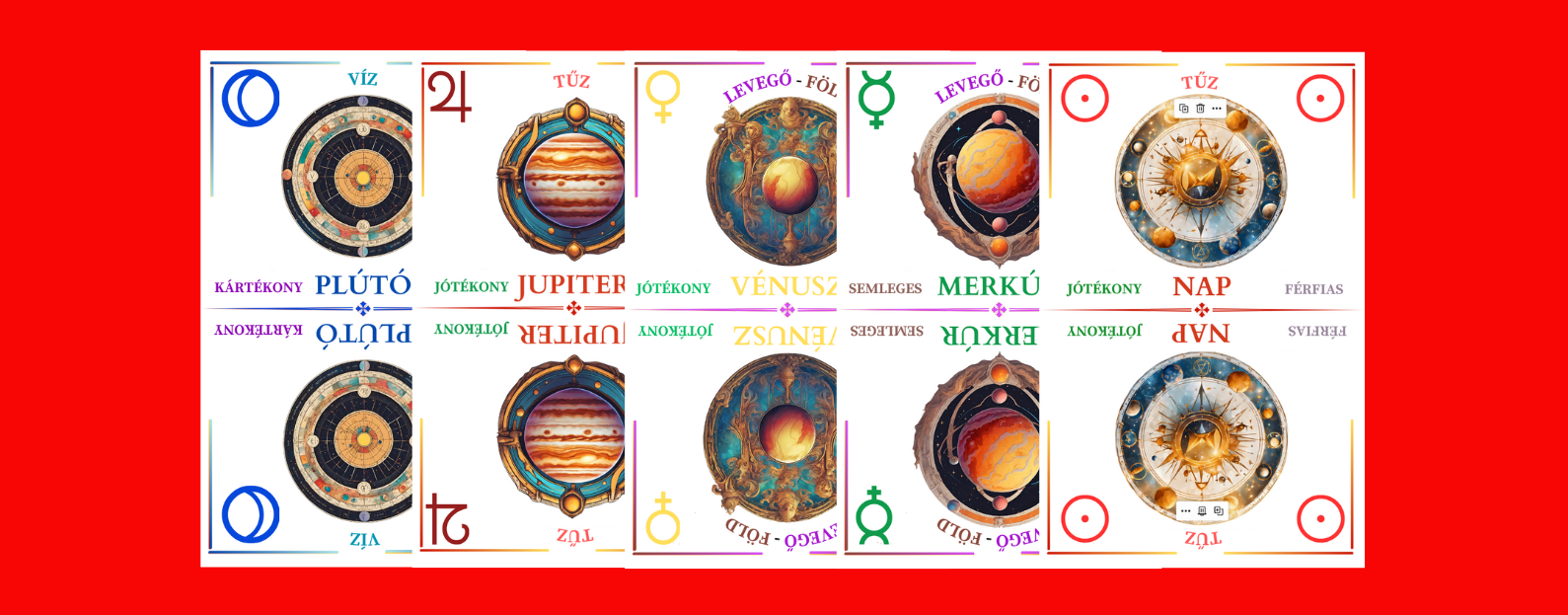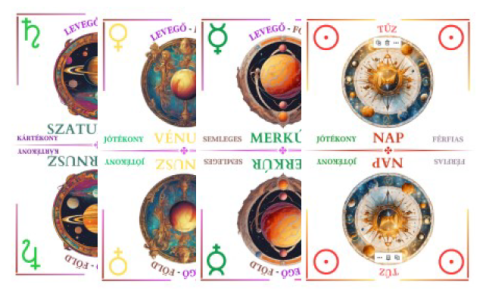 5. Ezen kívül – minimum hármasával – lepakolhatóak szettként a bolygók jótékony és a kártékony kategóriában is. Ilyenkor a Merkúr az urának megfelelően sorolandó a jótékony vagy kártékony csoportba.